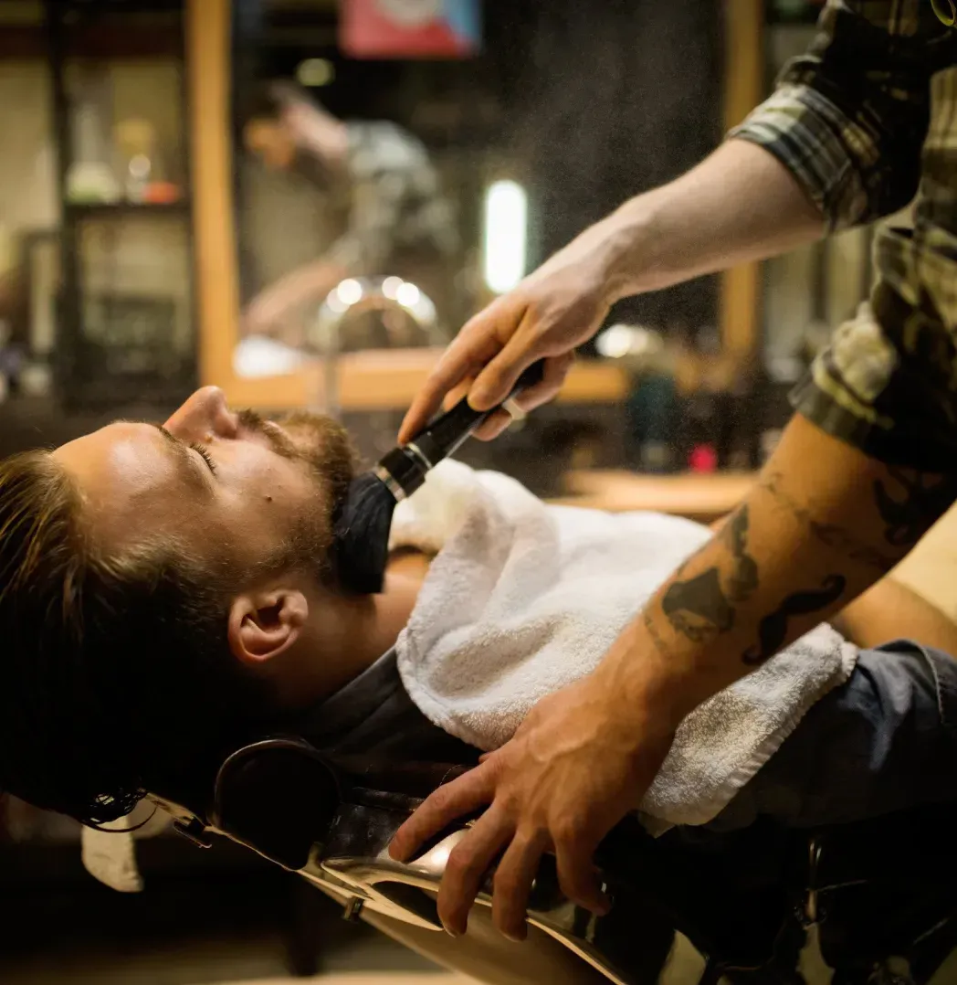 A luxurious shave with a straight razor, hot towels, and high-quality shaving cream for an ultra-smooth finish.